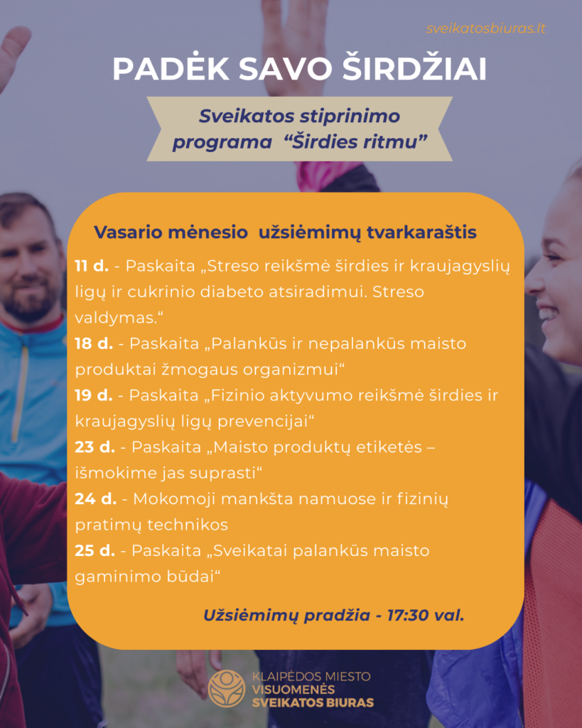 Vasario mėnesio sveikatos stiprinimo programos veiklų tvarkaraštis